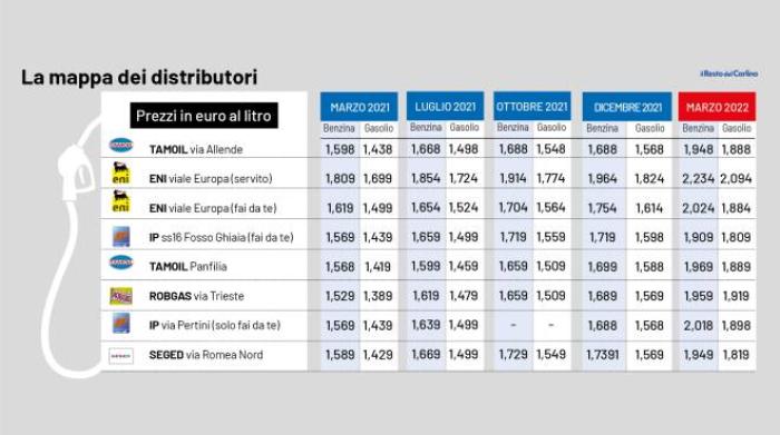 In base allelaborazione di Quotidiano Energia dei dati alle 8 di ieri comunicati dai gestori all. Il prezzo salato dellalta tensione geopolitica sul fronte Russia-Ucraina si scarica anche sui prezzi del petrolio e da lì di conseguenza prima o poi non immediatamente lo fa sulle pompe di benzina.